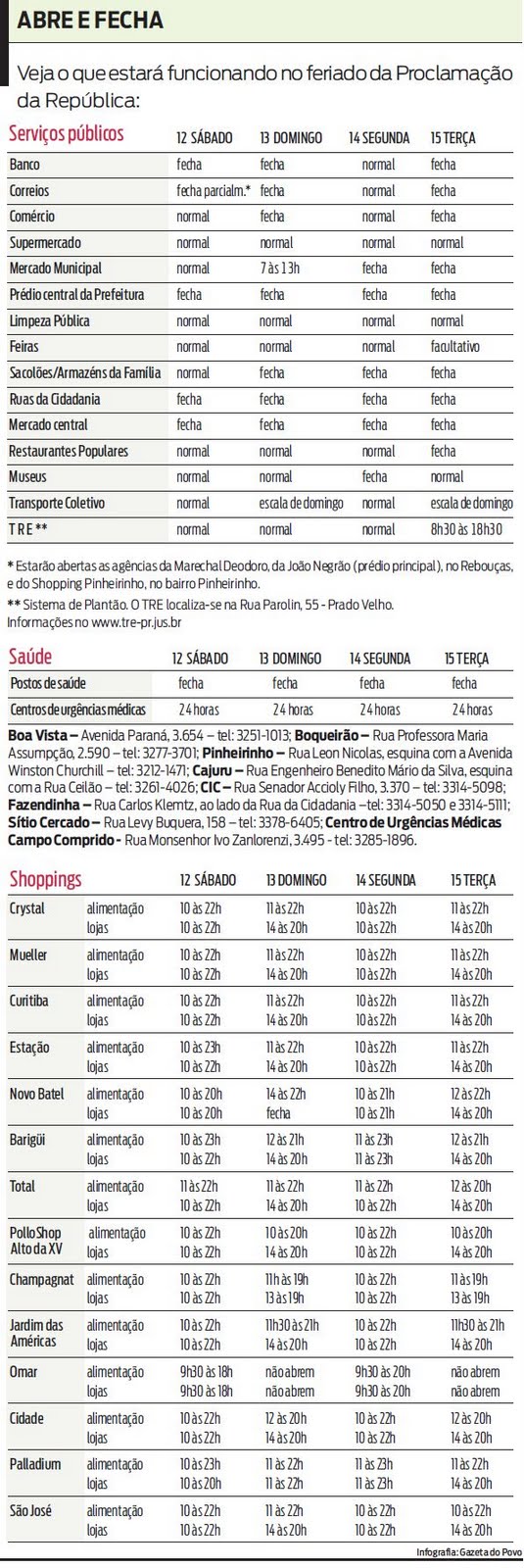 Confira, clicando na figura, o que vai funcionar nos próximos dias.
