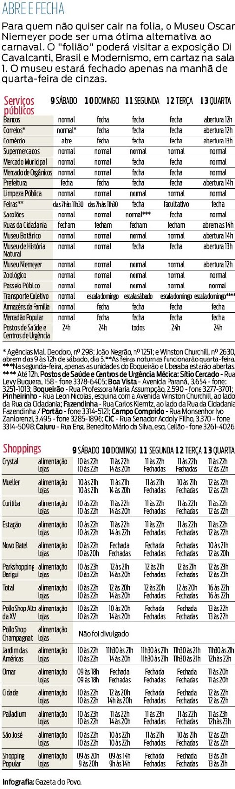 Clicando na figura abaixo, você poderá se informar sobre o que funcionará nesses dias.