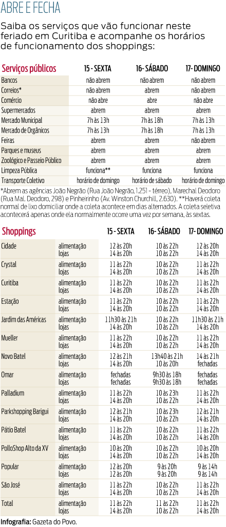 Confira na figura abaixo o que vai funcionar no feriado.